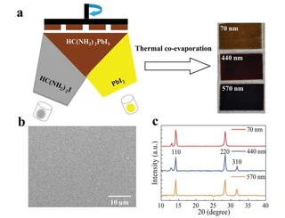 Hybrid perovskites have recently attracted attention in both materials science and opto-electronics research, because of their excellent opto-electronic properties and facile fabrication. Perovskitebased photovoltaic devices, photodetectors, and light-emitting diodes have exhibited unprecedented success. Moreover, optically pumped perovskite lasers have been reported with various crystal shapes. However, most of these lasers are fabricated from solutiongrown micro/nano crystals, and thus lack reproducibility. Here, we present controllable fabrication of formamidinium lead iodide(FAPbI3) perovskite microdisks by thermal co-evaporation, coupled with femtosecond laser direct writing. After careful investigation of dimensional effects, including the impact of diameter and thickness, we achieved an ultra-low threshold of B3 lJ cm2. Furtherore, we investigated the relationship of lasing performance with carrier dynamics by transient absorption. We found that a longer carrier lifetime can reduce the pump threshold. These microdisk lasers based on femtosecond laser fabrication of evaporated pervskite thin films show exceptional reproducibility, rendering them extremely suitable for mass production; hence, they offer a promisng method for low-cost, on-chip coherent light sources.