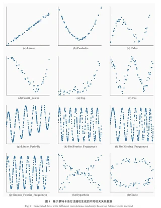 本工作选取多种经典相关系数进行了对比研究,如Pearson相关系数、Spearman相关系数、距离相关系数、最大信息系数及HHG相关系数。具体地,在不同数据规模及噪声水平下,对线性、非线性单调、非单调、非函数等不同类型变量的相关性分别进行研究,得到各相关系数的统计功效。通过分析发现,Pearson相关系数、Spearman相关系数更适合衡量线性、非线性单调相关关系,最大信息系数则更适合衡量含有周期性的相关关系,HHG则更适合衡量非函数相关关系。本研究可为挖掘不同相关关系,提供相关系数选取依据。