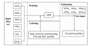 By virtue of the rapid development of ocean observation technologies, tens of petabytes of data archives have been recorded, among which, the largest portion are those derived from the orbital satellites, embodying the character of ocean surface. Nevertheless, the insufficiency of information below the subsurface restricts the utilization of these data and the understanding of ocean dynamics. To circumvent these difficulties, we present the spatially three-dimensional reconstruction of ocean hydrographic profiles at depth based on the satellites and in-situ measurement data. In this manuscript, long short-term memory network (LSTM) and Gaussian process regression (GPR) methods are invoked to predict the temperature and salinity profiles in the northwest Pacific Ocean, which show satisfactory results, with the root mean square error (RMSE) of temperature is less than 1.45, and the RMSE of salinity is less than 0.19. Nonetheless, the large volume of data results in a high cost of computation and storage, and to improve this, the proper orthogonal decomposition (POD) method is subtly incorporated into these two models. The incorporation of POD method, sufficiently accelerates efficiency, while the speed improvement is more prominent in LSTM, with an improvement of 7.5 folds in general, but without much loss of accuracy. The sensitivity of different sea surface parameters on the reconstructed profiles reveals that sea surface height anomaly and latitude significantly influence the reconstruction of temperature anomaly (TA) and salinity anomaly (SA) profiles. Besides, sea surface salinity and sea surface temperature anomalies can improve the model’s estimation ability for the upper TAs and SAs, respectively. The contribution of monthly climatology to temperature and salinity profile estimation is also explored in this paper. It is shown that adding monthly mean climatology to the input of the model can achieve more accurate estimates.